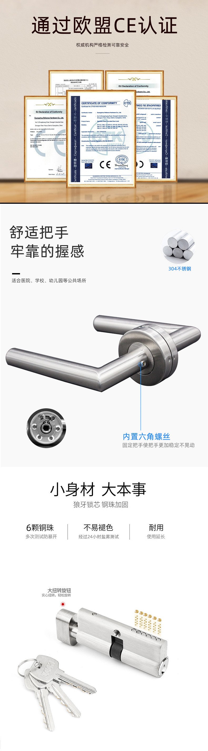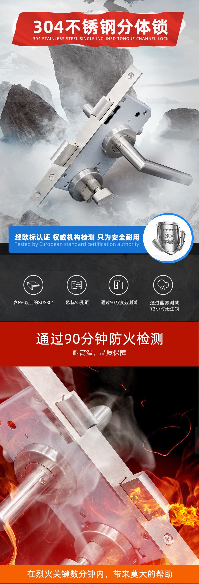 RTH-03 热卖款不锈钢直管把手防火分体锁